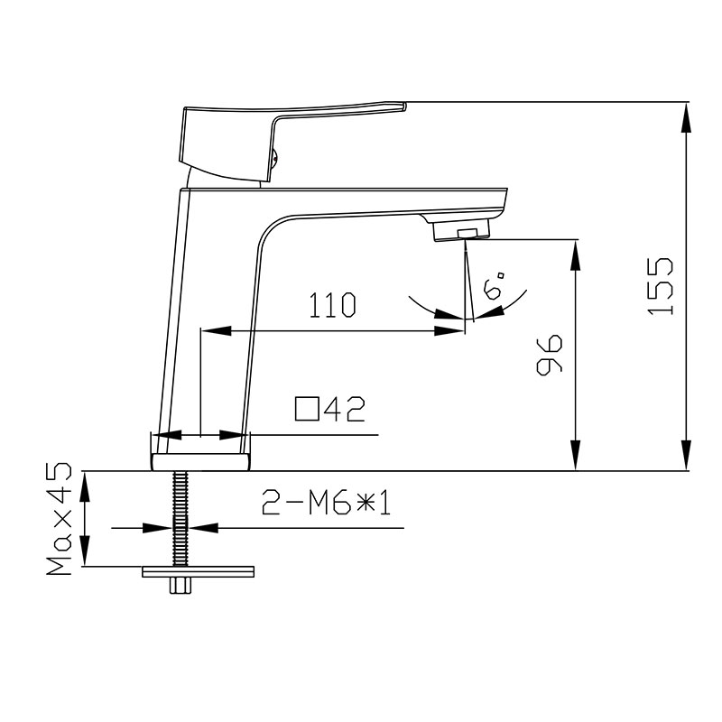 смеситель умывальник MELODIA Etude картридж д.25мм MDV 30020 без гибкой подводки с поворотным аэратором 15 градусов