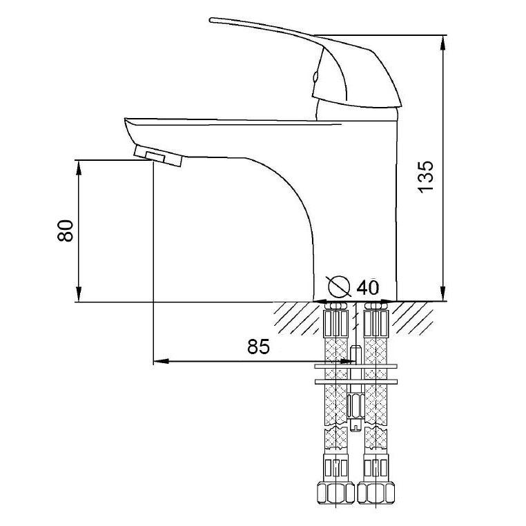 Смеситель для умывальника в цвете белый/хром с картриджем 35мм без гибкой подводки