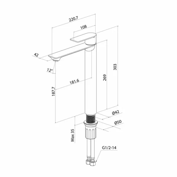 Смеситель для настольного умывальника, материал - нержавеющая сталь, цвет - черный матовый, однозахватный, керамический картридж 35мм, пластиковый аэратор, в комплекте: крепеж, гибкая подводка G1/2x40cm.