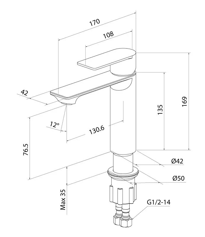 Смеситель для умывальника, материал - нержавеющая сталь, цвет - сатин, однозахватный, керамический картридж 35мм, пластиковый аэратор, в комплекте: крепеж, гибкая подводка G1/2x40cm.