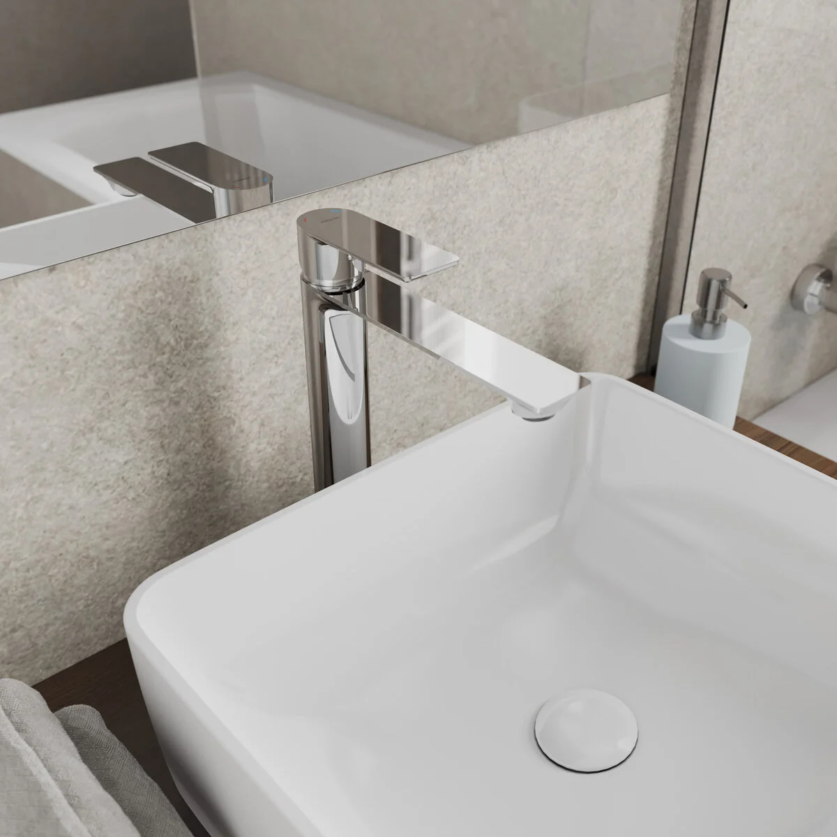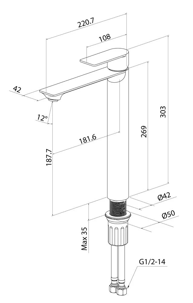 Смеситель для настольного умывальника, материал - нержавеющая сталь, цвет - сатиг, однозахватный, керамический картридж 35мм, пластиковый аэратор, в комплекте: крепеж, гибкая подводка G1/2x40cm.