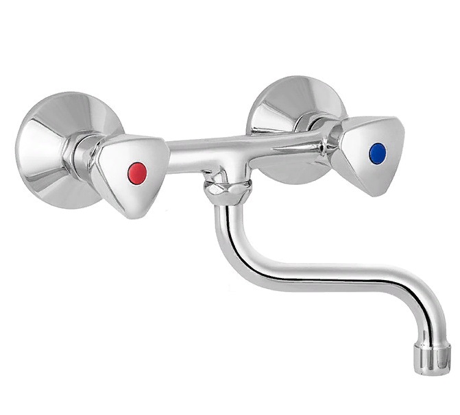 Смеситель с коротким латунным изливом S125 мм. Устанавливается на стену. Модель выполнена в классическом дизайне. Керамическая кран-букса PPA.