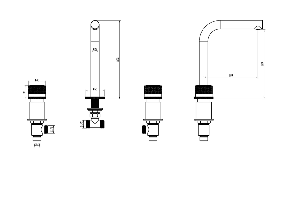 Смеситель для раковины на 3 отв.Boheme Stick B (черный) (152-B.3)