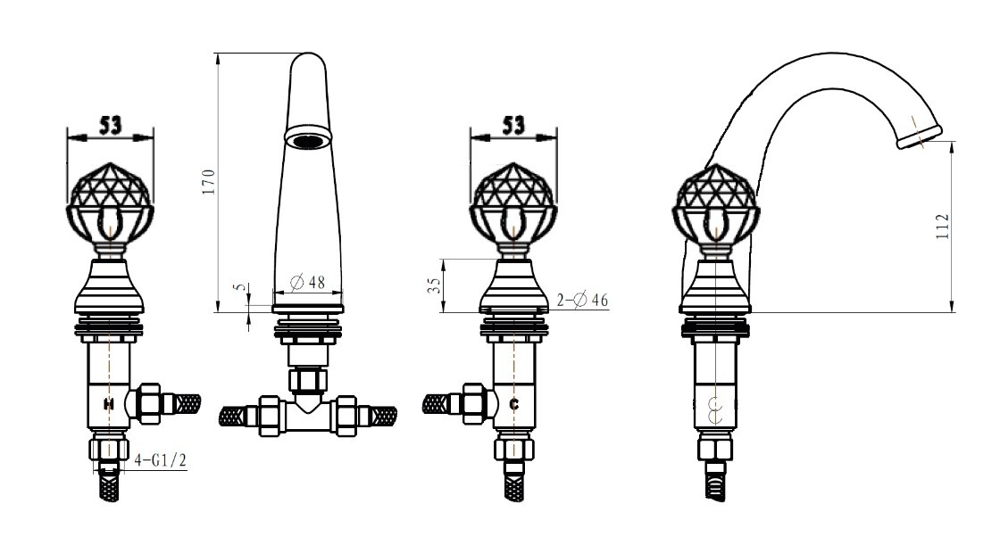 Смеситель для раковины на 3 отверстия Boheme Brilante Presente хром (357)
