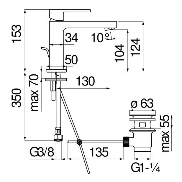 Смеситель для раковины Nobili Up черный (UP94118/1BM)