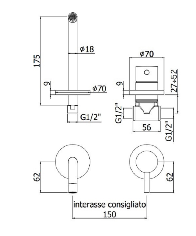 Смеситель для раковины Paffoni Light термостатический, черный (LIG006NO70)