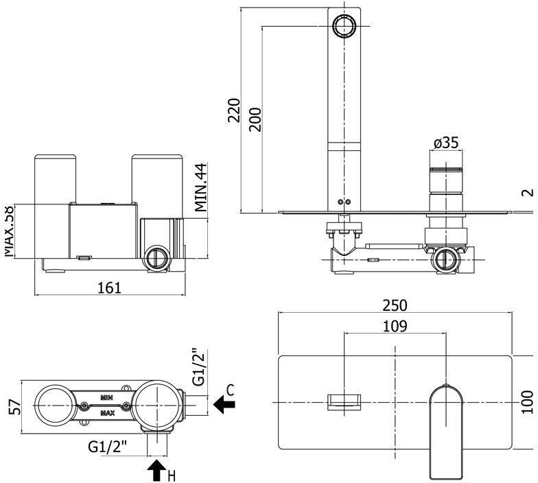 Смеситель для раковины Paffoni Tango термостатический, хром (TA105CR)