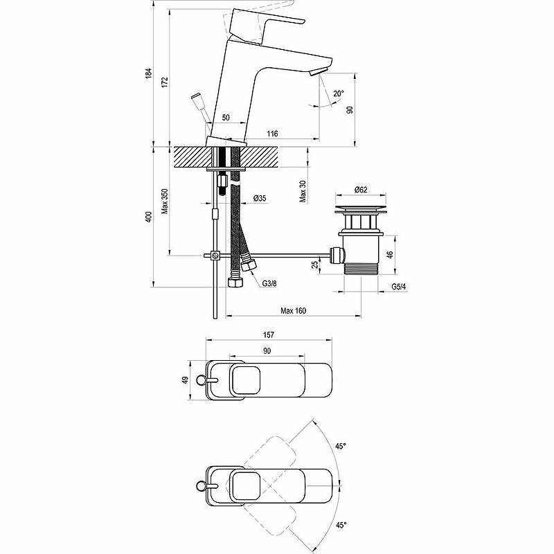 Смеситель для раковины Ravak 10° TD 013.00 с донным клапаном хром (X070061)