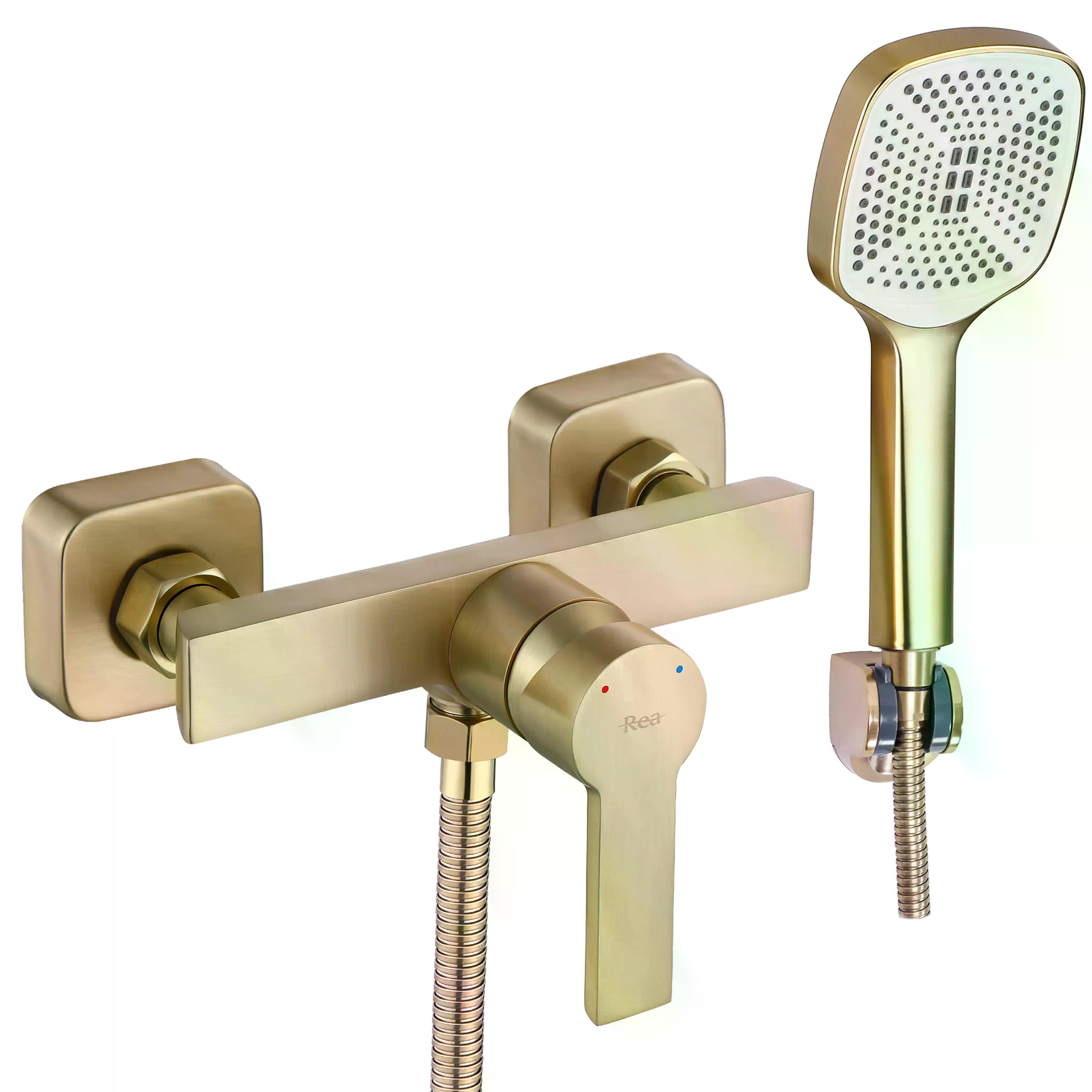 Смеситель для раковины Rea Argus с душевым комплектом золото матовое (REA-B6413)