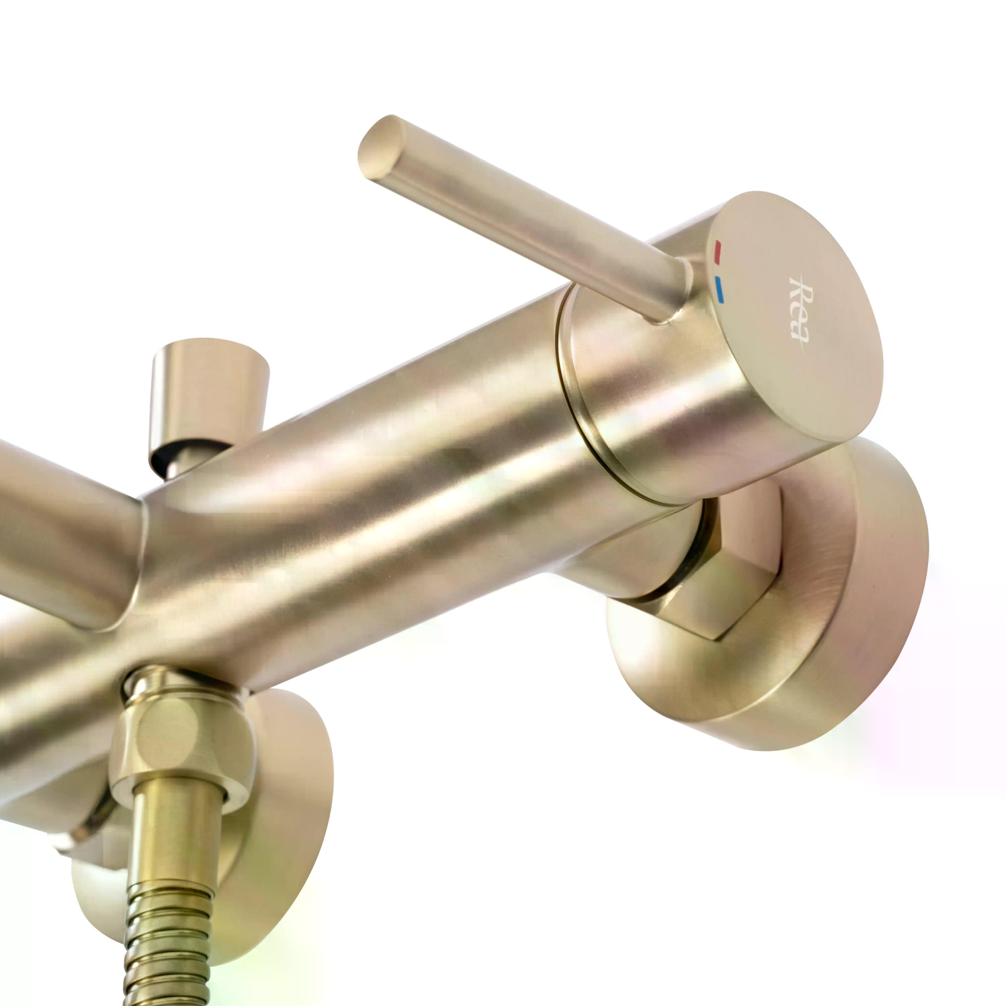 Смеситель для раковины Rea Lungo с душевым комплектом золото матовое (REA-B8010)