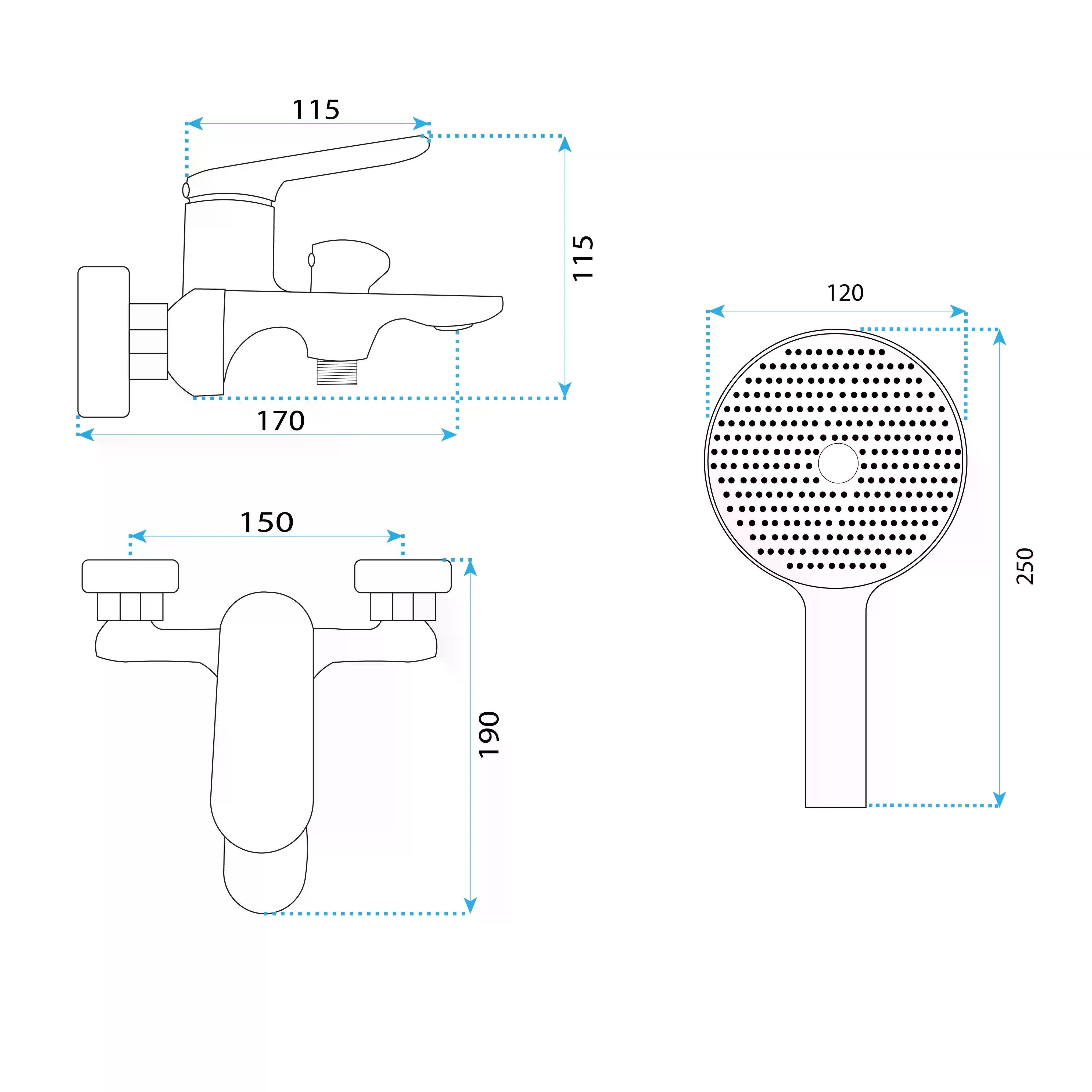 Смеситель для раковины Rea Marco с душевым комплектом оружейная сталь (REA-B5063)