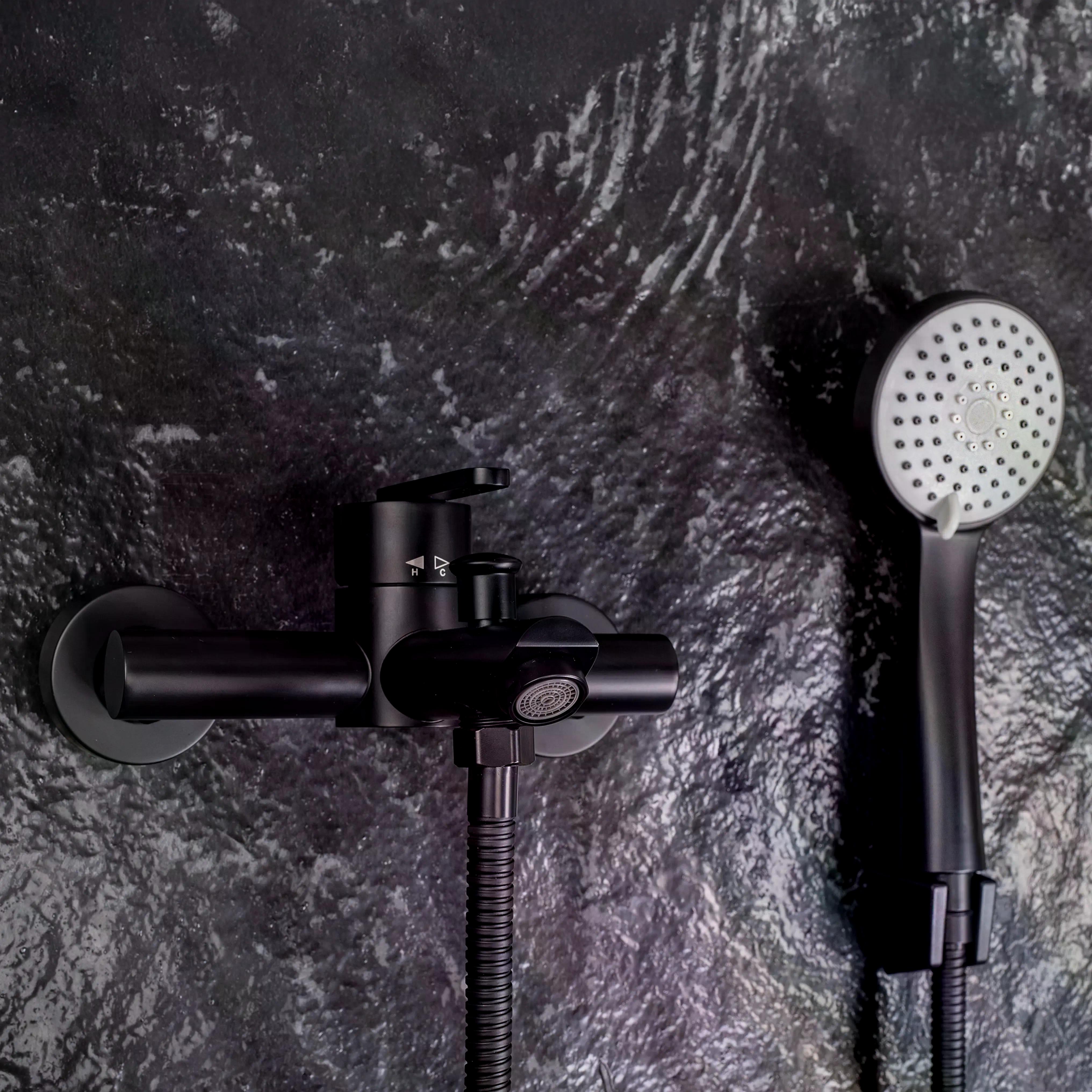 Смеситель для раковины Rea Ontario с душевым комплектом черный матовый (REA-B5512)