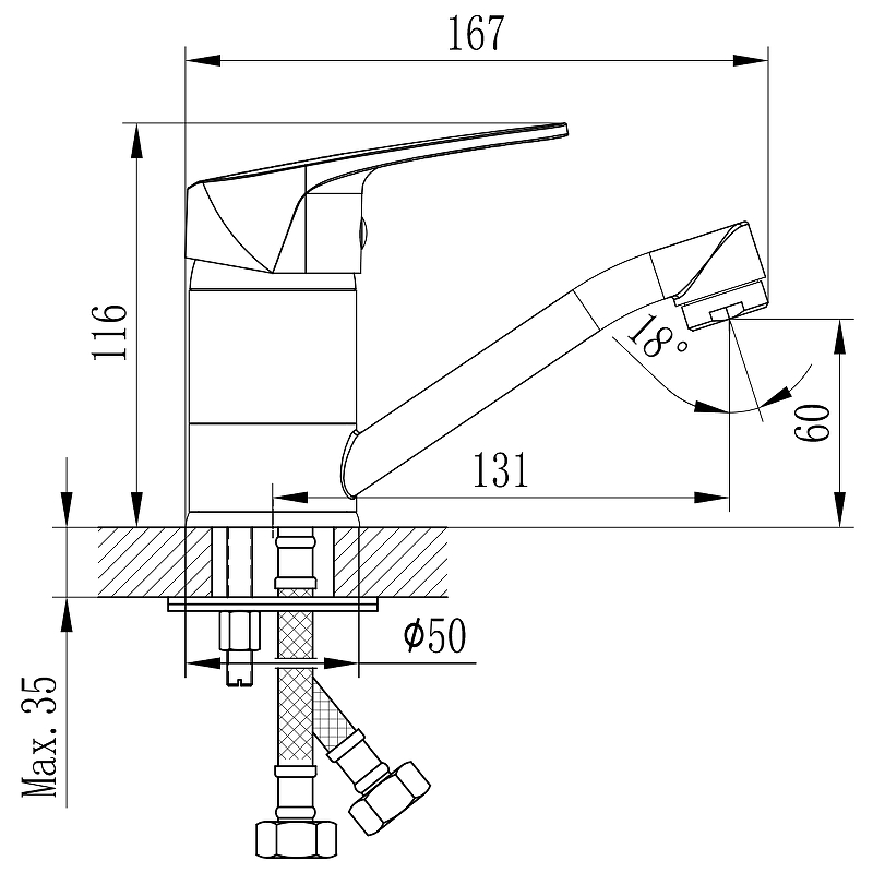 Состав поставки: смеситель, гибкая подводка