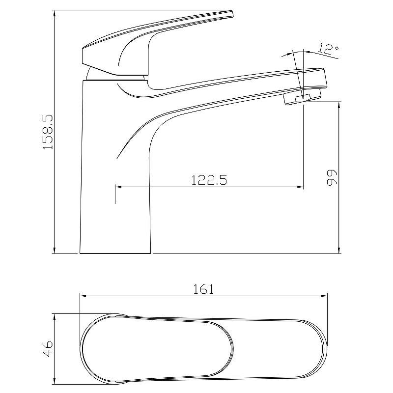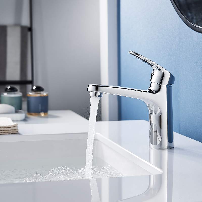 Смеситель для раковины, монолитный, высота излива 10 см, длина 12 см, латунь/хром