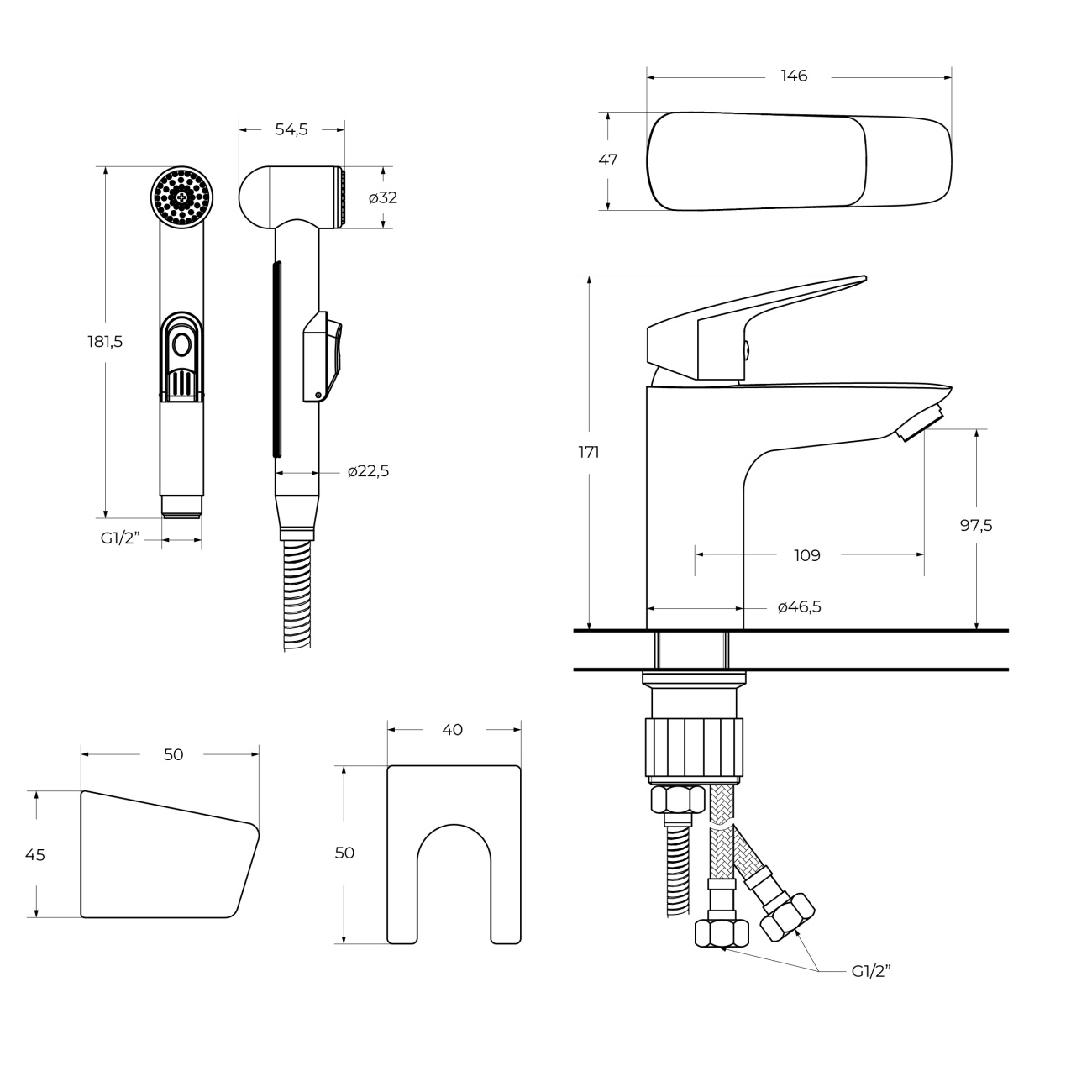 Смеситель для раковины с гигиеническим душем BelBagno (DUE-LVM/HGN-CRM-W0)