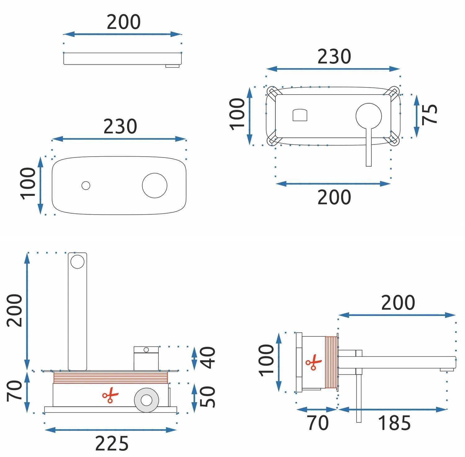 Смеситель для раковины скрытого монтажа REA Oval Black mat + box (REA-B8860)