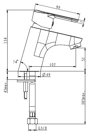 Технологические особенности: крепление подводки - гайки G3/8".