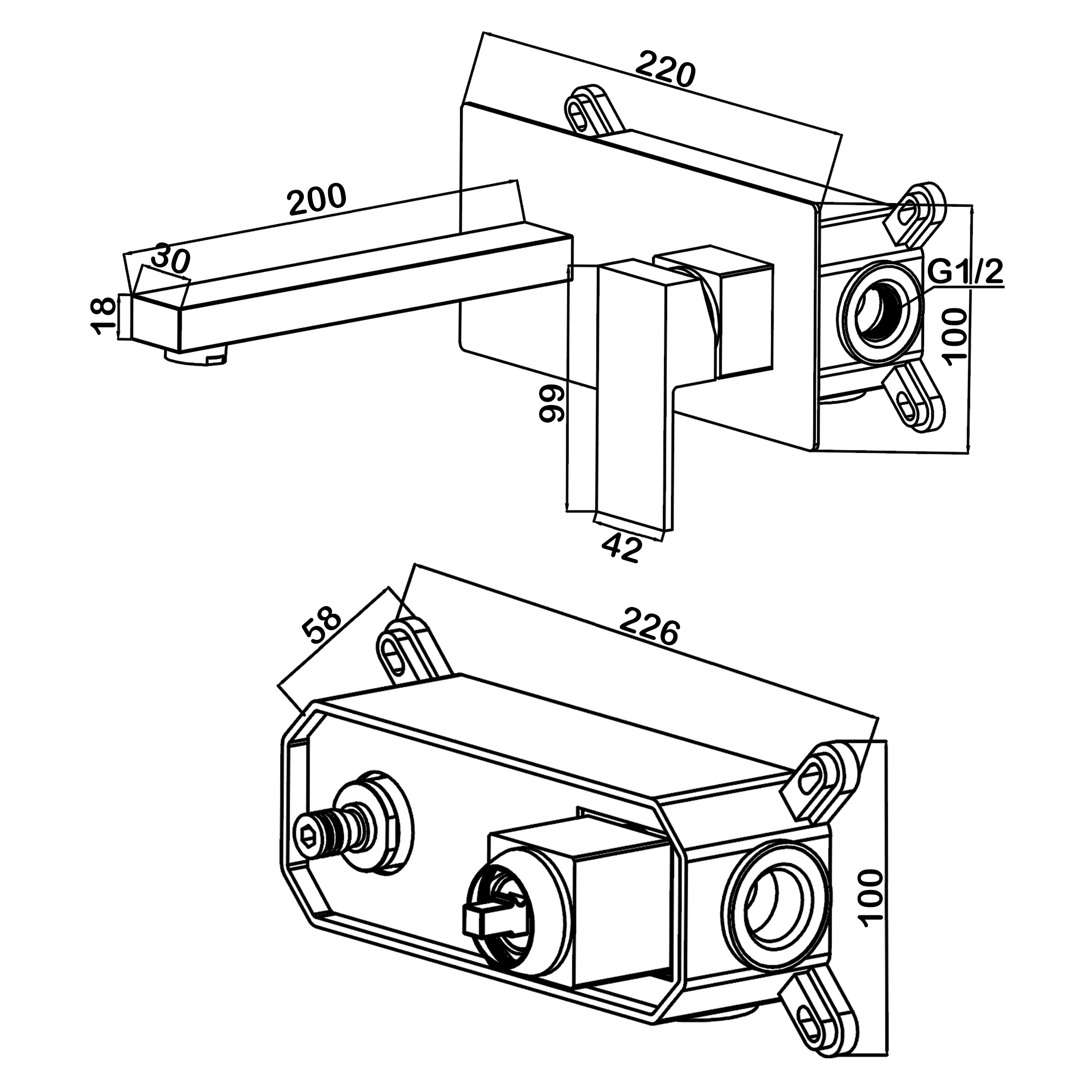 Смеситель для раковины Swedbe Platta встраиваемый черный (5501B)