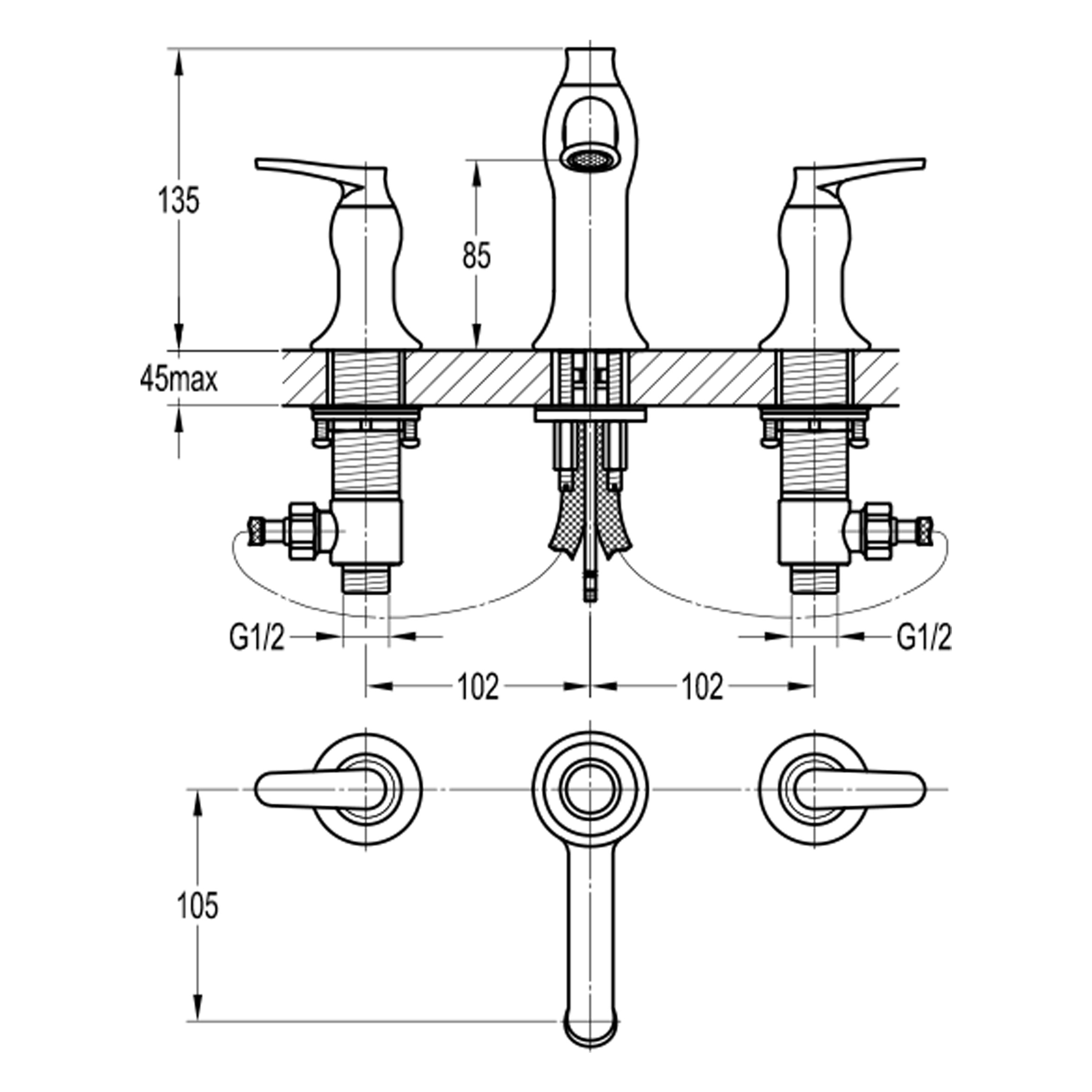 Смеситель для раковины Swedbe Terracotta на 3 отверстия терракота (темная бронза) (2550)