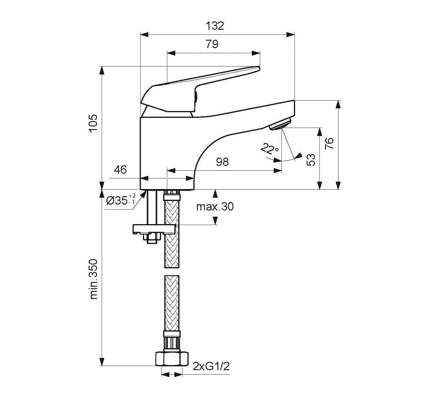 - Съемные шланги для подвода воды длиной 40 см, G 1/2.