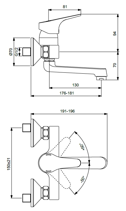 - Стандарт подводки: G 1/2, жесткая.