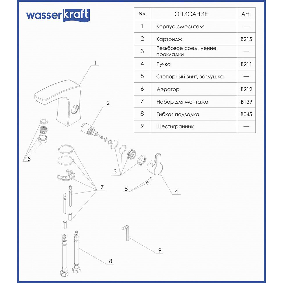 - Смеситель для раковины WasserKRAFT Berkel (4803)