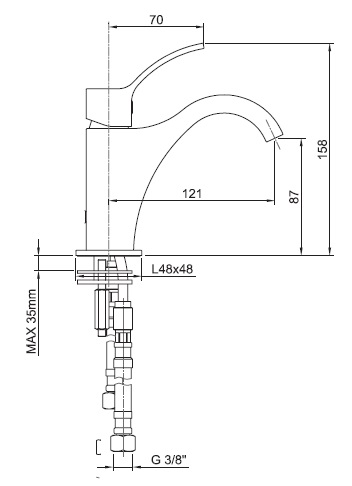Излив 121 мм, без донного клапана.