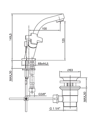 Излив 100 мм, донный клапан.