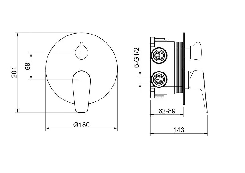 Смеситель для ванны Aquatek бетта 3 режима (внешняя и скрытая часть) шлифованный черный хром (AQ1147BGM)