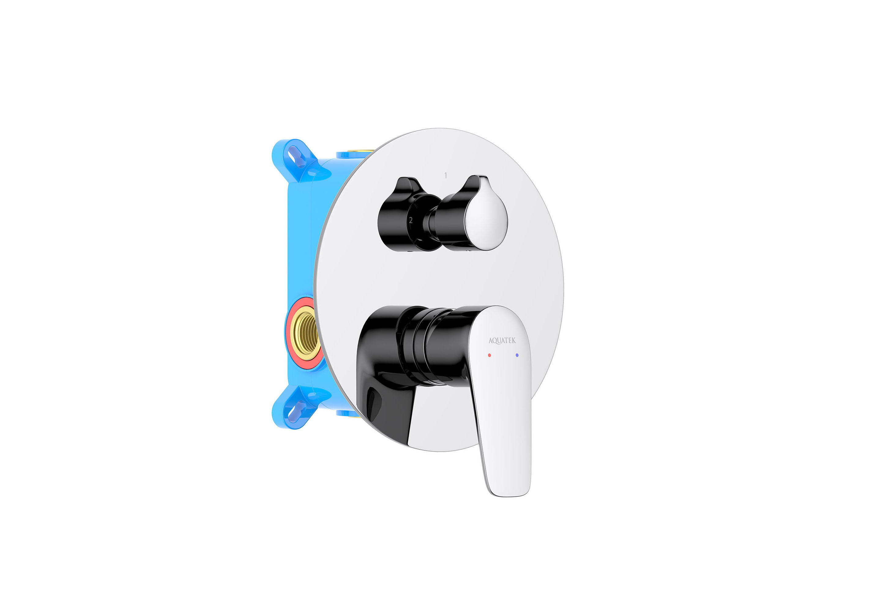 смеситель из латуни с установочной коробкой на 2 потребителя, ручка из цинкового сплава, картридж citec 35 мм, испания, декоративная пластина 3мм из нерж., дивертор - керамический картридж
