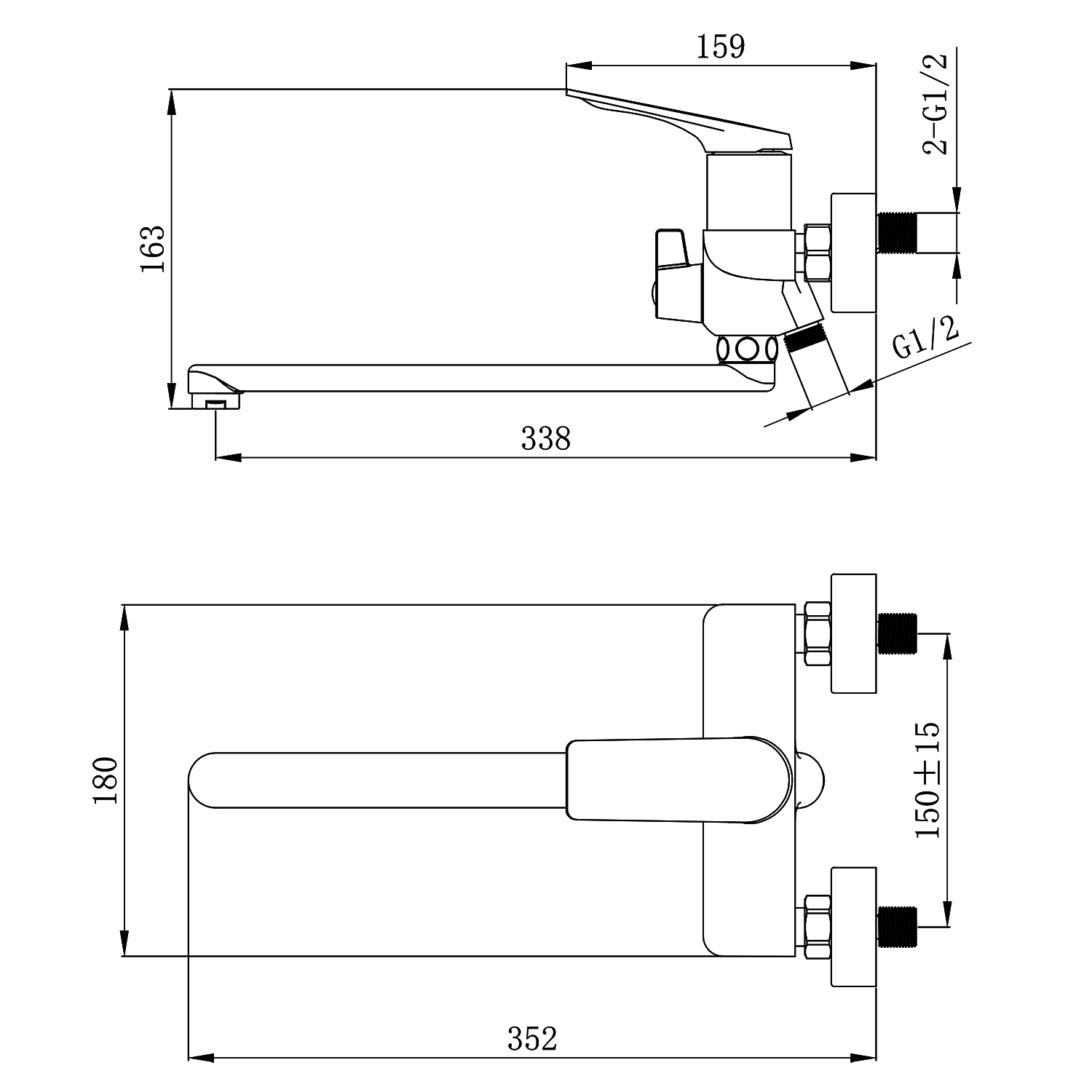 Смеситель для ванны Azario Lursy длинный излив с ручным душем шланг 150 см черный матовый (AZ-K1749B)