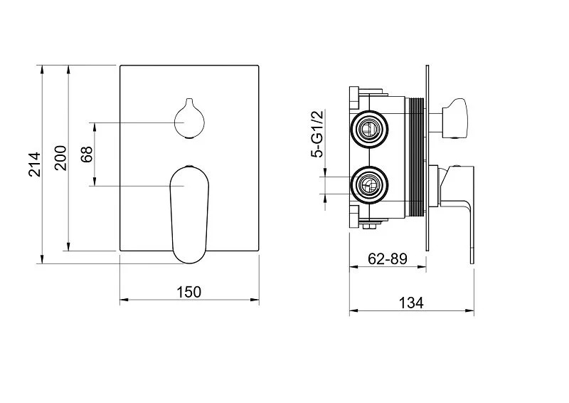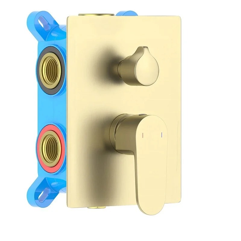 Смеситель для ванны и душа Aquatek Оберон 3 режима (внешняя и скрытая часть) шлифованное золото (AQ1247BG)