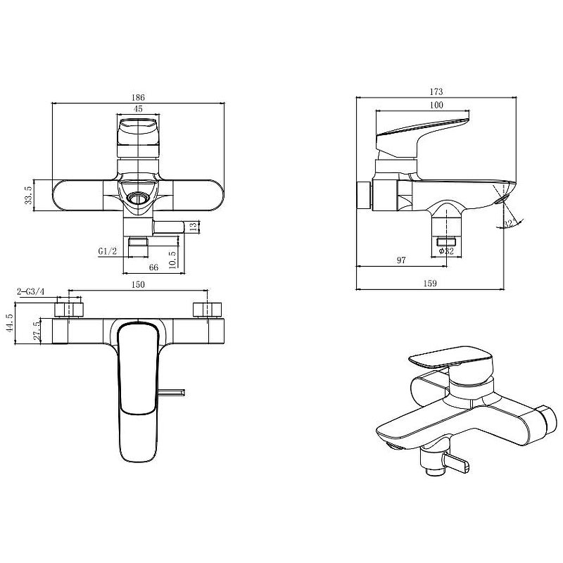 Смеситель для ванны и душа Aquatek Вега хром (AQ1040CR)