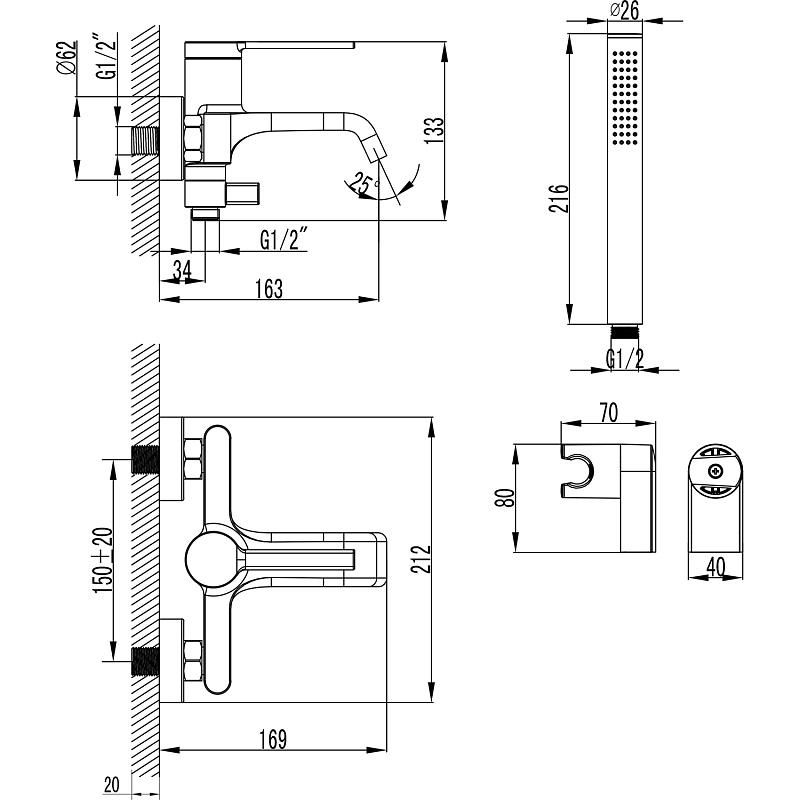 Смеситель для ванны и душа Azario Vincente с душевым комплектом хром (AZ-VRZ238326C)