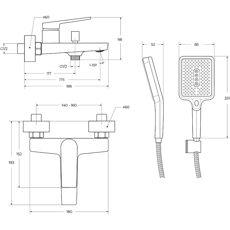 Смеситель для ванны и душа BelBagno Ardente с ручным душем, шлангом и держателем, хром (ARDENTE-VASM-CRM)
