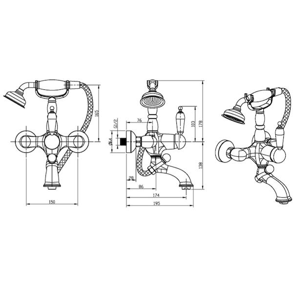 Смеситель для ванны и душа Boheme Imperiale Ripresa с душевым гарнитуром золотой (323)