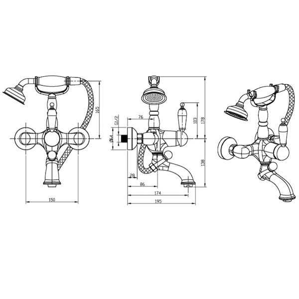 Смеситель для ванны и душа Boheme Medici Ripresa с душевым гарнитуром бронзовый (303)