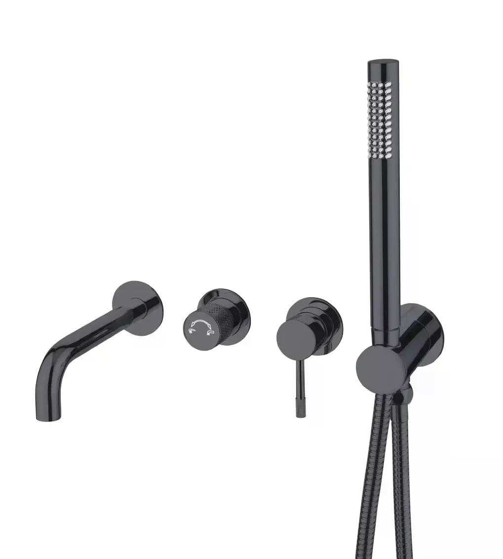 Состав поставки: смеситель (внешняя и внутренняя часть), излив, душевой шланг, душевая лейка