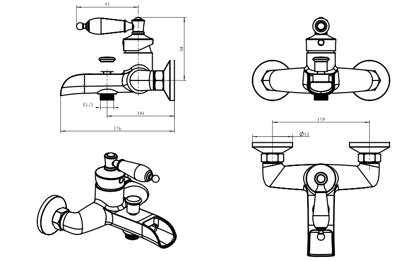 Смеситель для ванны и душа Boheme Vogue с душевым гарнитуром бронза (203)