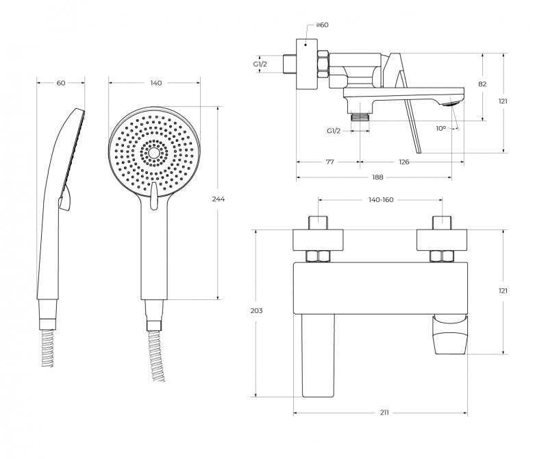Смеситель для ванны и душа Cezares Comfort хром глянцевый (COMFORT-VD-01)
