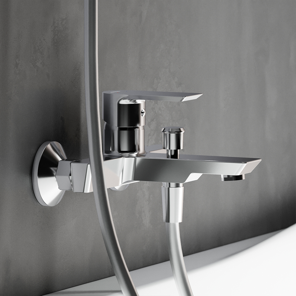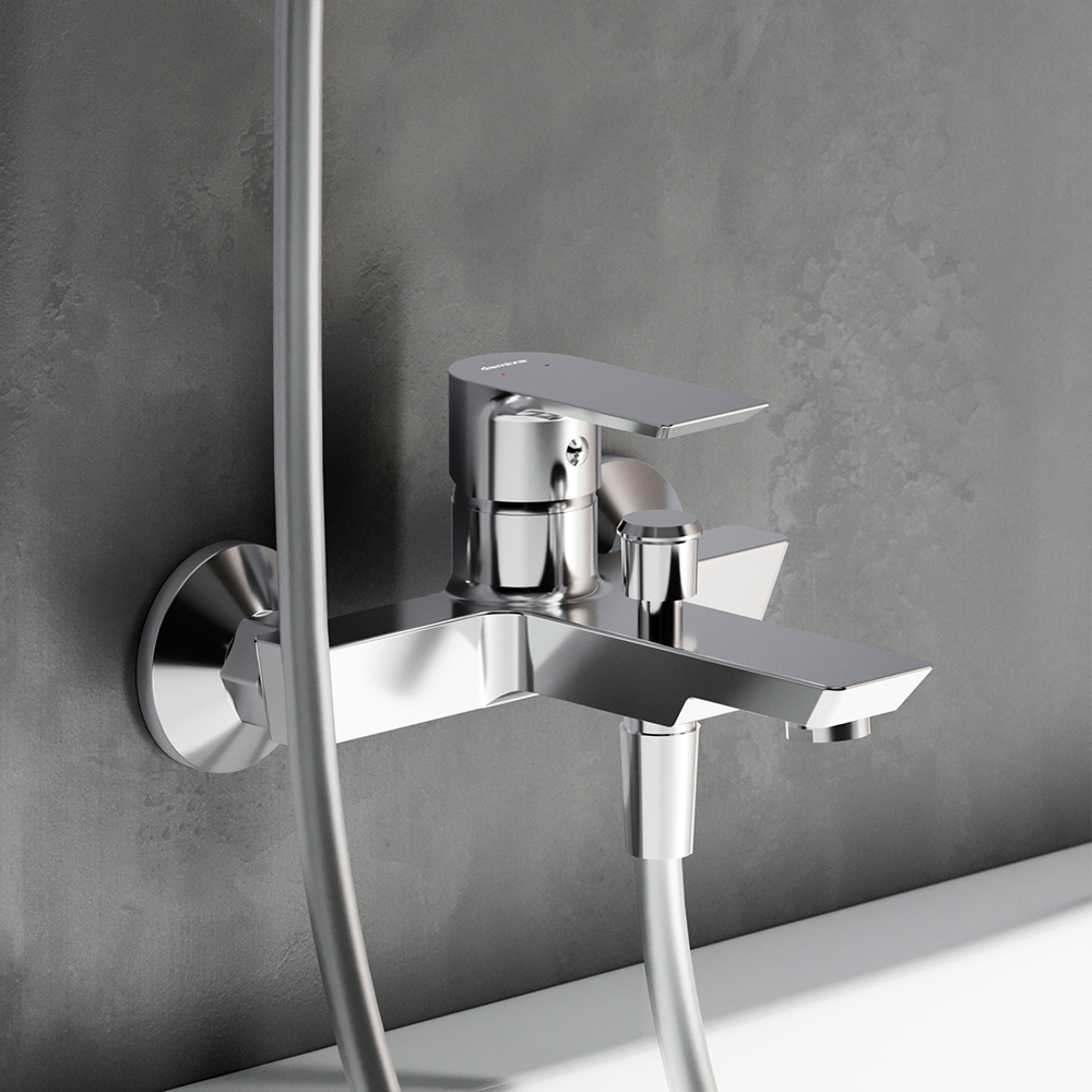 Смеситель для ванны и душа из коллекции Apollo станет центром притяжения ванной комнаты. Тонкие геометричные линии и четкие грани в сочетании с массивными формами создают исключительную коллаборацию стиля.