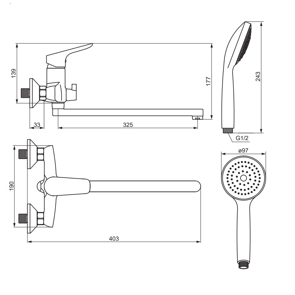 Смеситель для ванны и душа Damixa Jupiter хром (779500001)