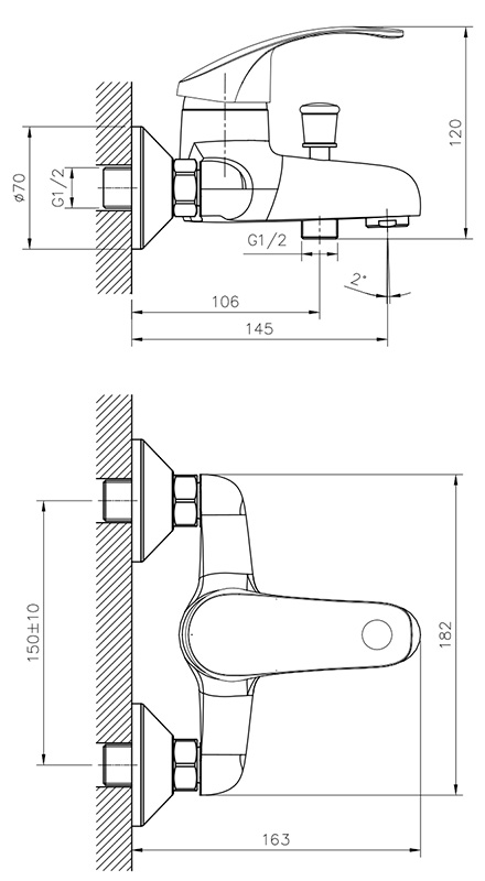 Смеситель для ванны с коротким изливом, вытяжной переключатель, хром