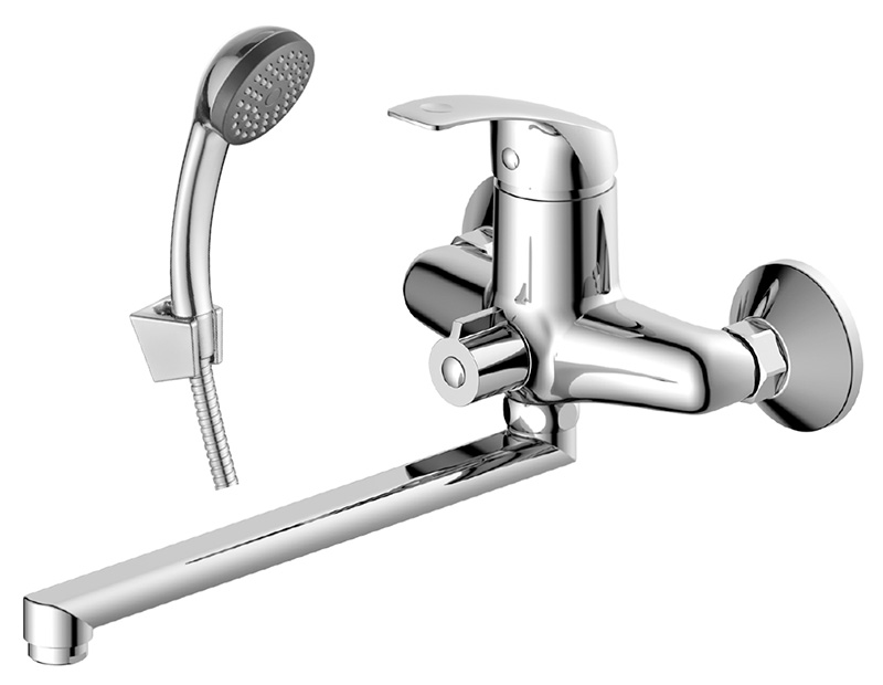 Смеситель универсальный с плоским изливом 30 см, поворотный переключатель, хром