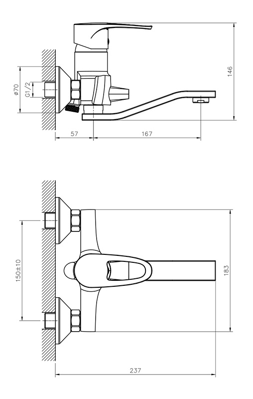 Смеситель для ванны и душа Decoroom хром (DR70044)