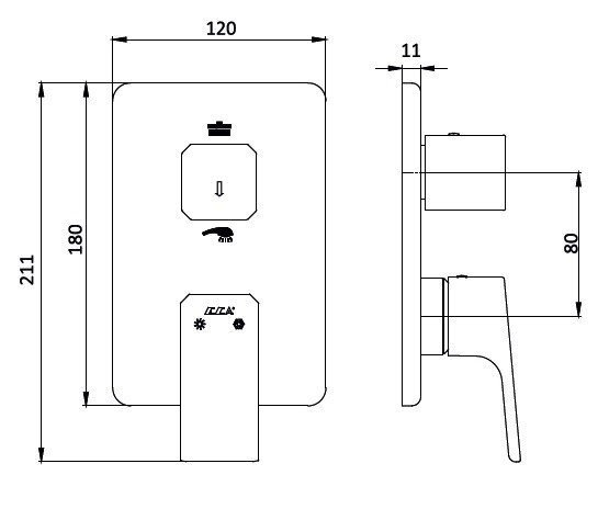 E.C.A. Tiera 102167205C1EX-KDE Смеситель для ванны - внешняя часть (чёрный матовый). Специальный переключатель на 2 направления. Для монтажа с внутренним механизмом 102166201C1EX - в комплект поставки не входит.
