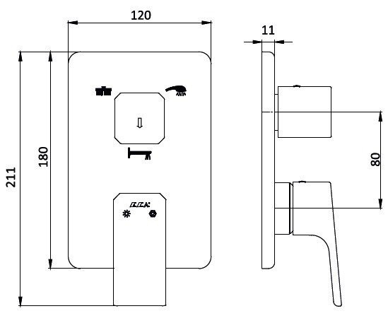 Смеситель для ванны - внешняя часть (чёрный матовый). Специальный переключатель на 3 направления. Для монтажа с внутренним механизмом 102166301C1EX - в комплект поставки не входит.
