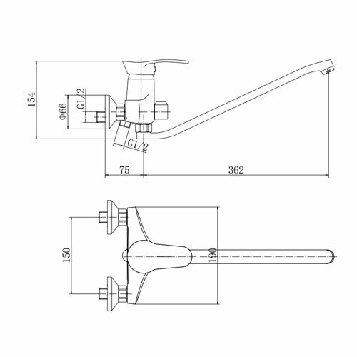 шланг: L=1500 мм, оплётка сталь SUS201, хром