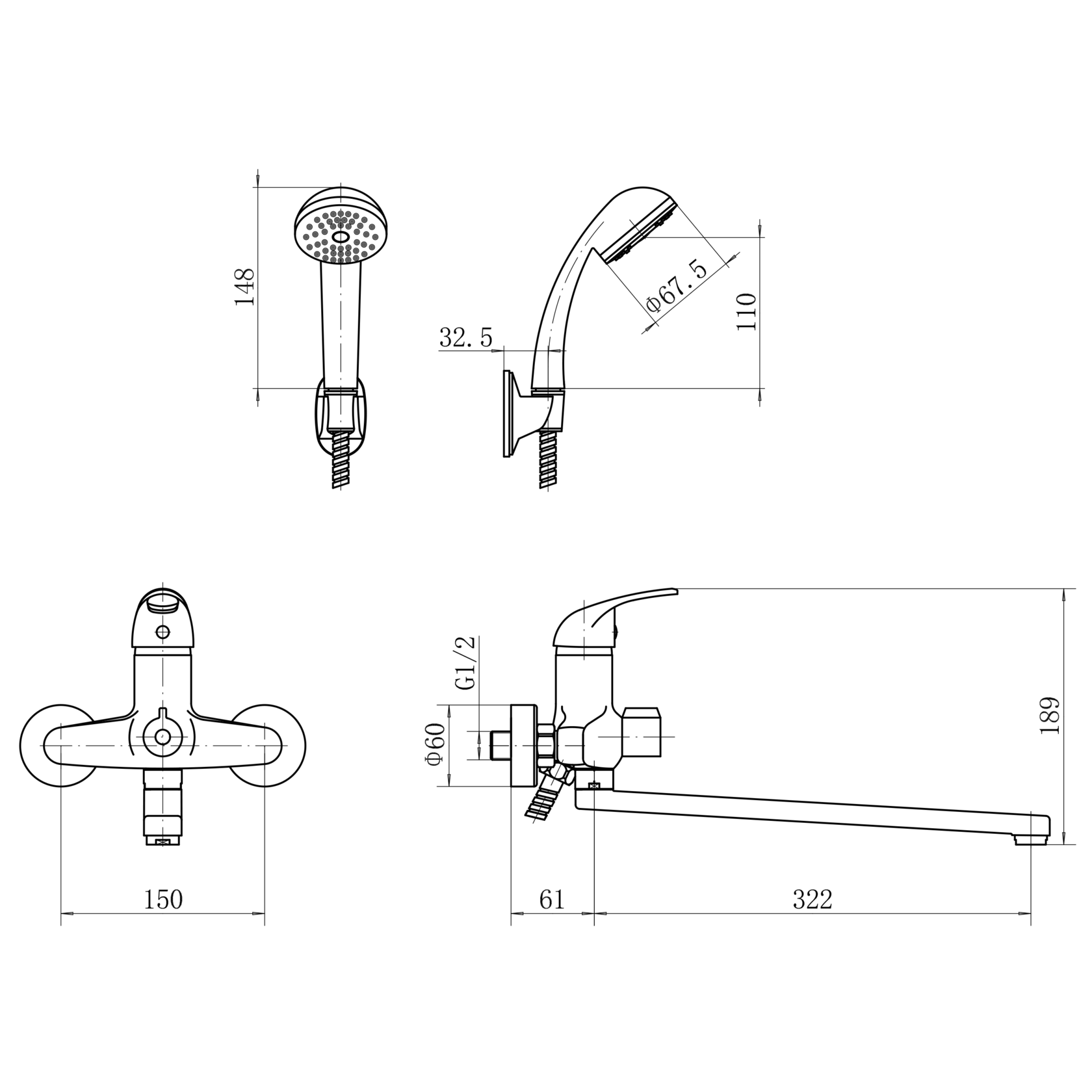 Смеситель для ванны и душа Fashun с душевым комплектом хром (A2215N)
