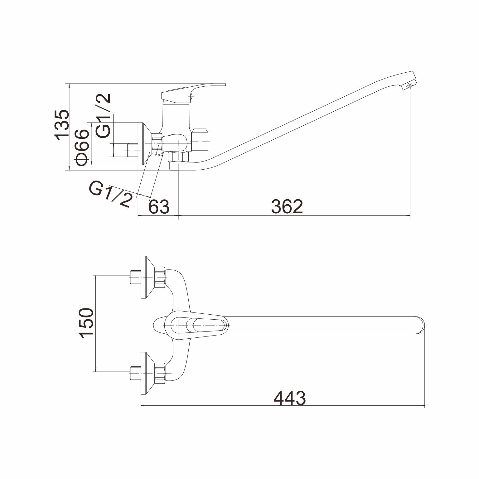 излив: L=360 мм, поворотный